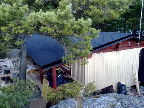 Kesämökin remontti ulkosaaristossa. Katto uusittiin, terassi laajennettiin, uudet pihakäytävät ja kiintokalusteet