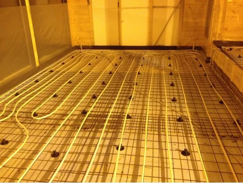 Lattialämmitysputket asennettu, seuraavana työvaiheena on lattian betonivalu